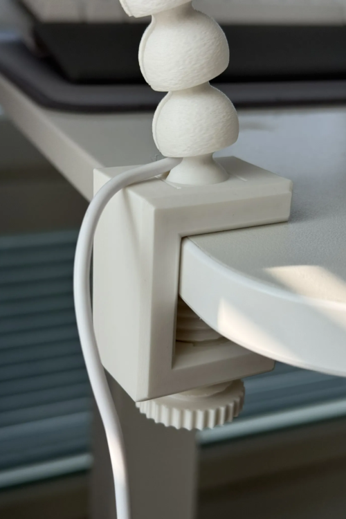 The model consist of ball joints fixed to a table clamp. The will fit table from 5 µm all the way up to 30mm.
